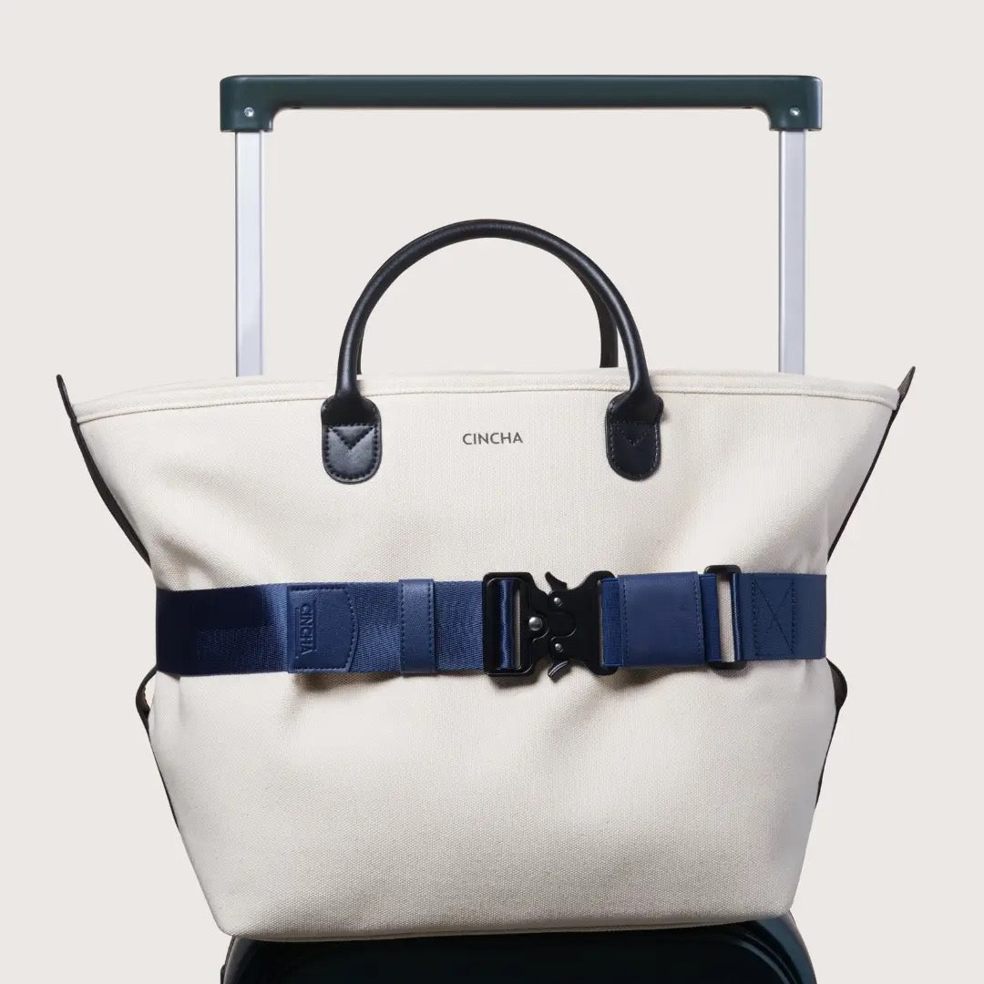 AS SEEN ON SHARK TANK, OPRAH DAILY & TRAVEL + LEISURE Make traveling easier with the Travel Belts. This chic accessory neatly secures your personal bag to your carry-on or checked luggage handle, so you can maneuver hand’s free. Turn (almost) any bag into your favorite travel bag in a cinch with the Travel belt. Choose from a range of fun colors and add a monogram for a truly personal touch. Secure the bag! Matte black quick-release buckle Vegan leather and elastic accents Weight: 7.8 oz Adjustable to 45" to fit most bags Elastic allows for an extra tight hold